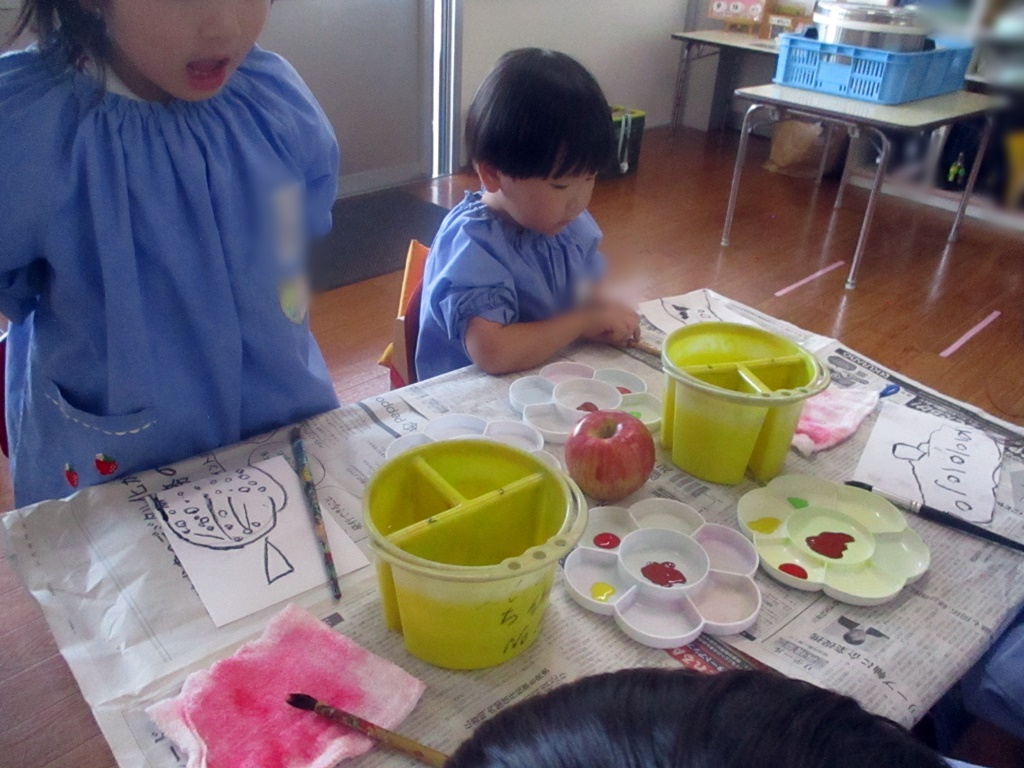 2学期初めての絵手紙では「りんご」を描きました🍎 絵手紙自体を描くのが初めての子どもたち。まずは匂いを嗅いだり、どんな形なのか触ったりして観察をしました! 次にりんごをよ~く観察しながらクレパスで輪郭を描いていきました! 「ここへこんでる~」「ヘタは少し斜めだね」などしっかり観察しながら、紙からはみ出るくらい大きく描いていました☆...