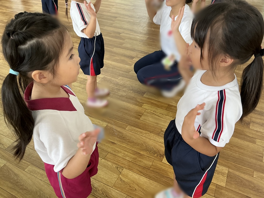 今週はみんなが大好きなリトミックがありました! この音の時はどういう風に歩いたらいいのかな、動いたらいいのかななど自分たちで考えたり、これまでを思い出しながら活動しました! また、同じペアのカードを探すゲームをしたり、ボールを使って体操もしたりしました! お歌や体を動かすことが大好きな年中さん♪次のリトミックも楽しみだね☺
