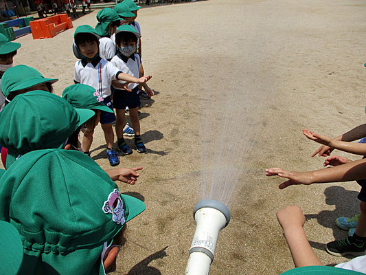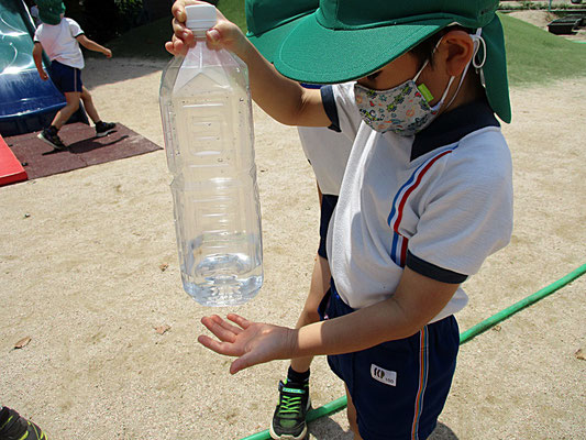 外に出て、ペットボトルやシャワーを使い、観察です。