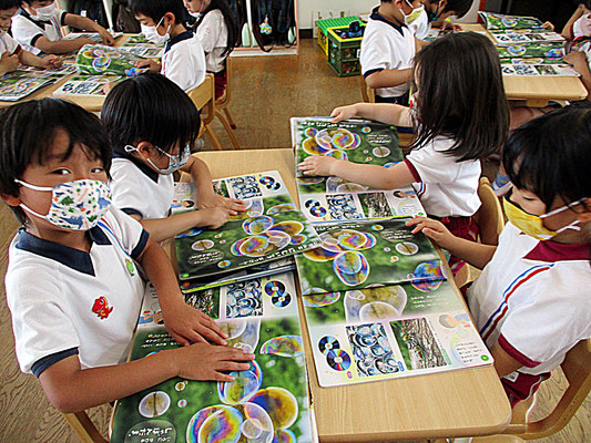 今月は”にじをつくろう!”のページがあり、子ども達から