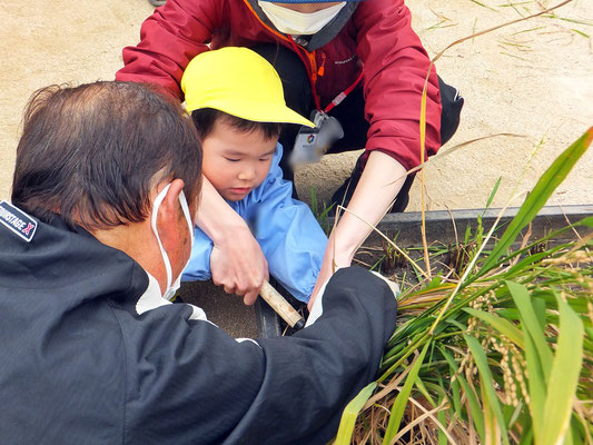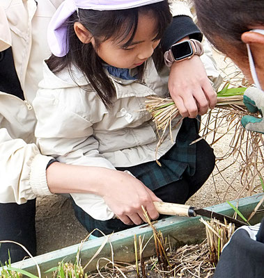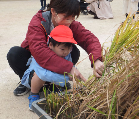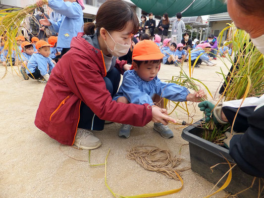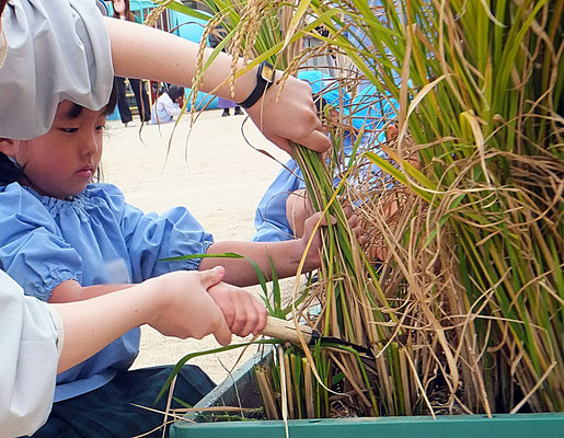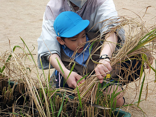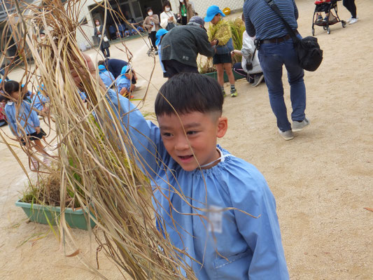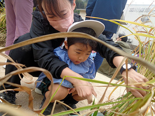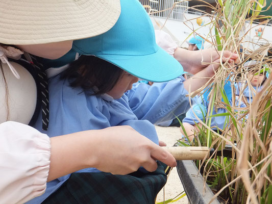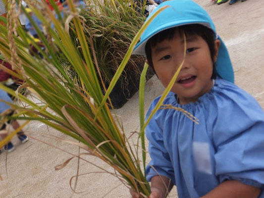 成長した年中組さん、年長組さん。力強く鎌で刈ることができましたよ♪
