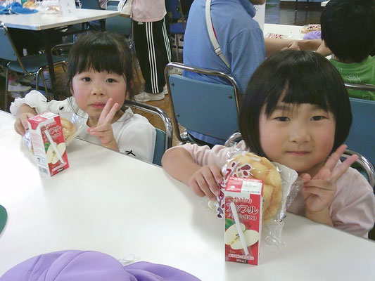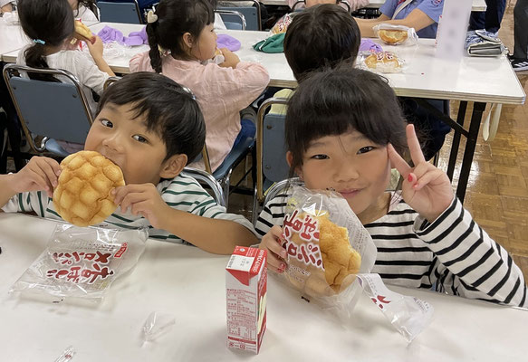 メロンパンとリンゴジュースをぺろりと完食している子どももたくさんいました☻
