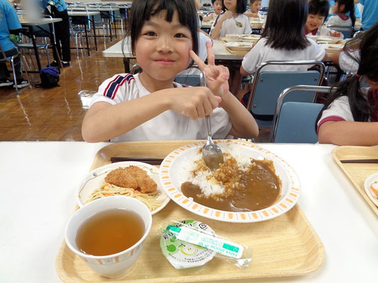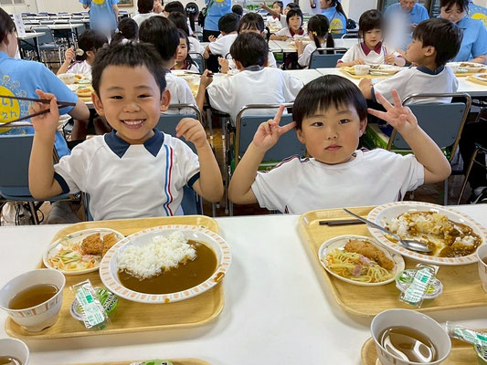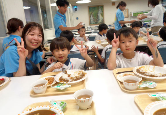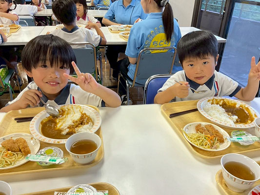夜ごはんはみんな大好きなカレーライス!トンカツやサラダもあり、モリモリ食べる子ども達🍛