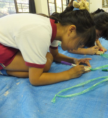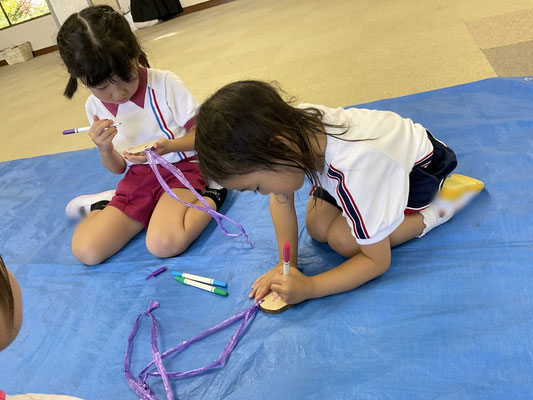 自分の名前を描いたり、模様を描いたりと、素敵なペンダントができました☻