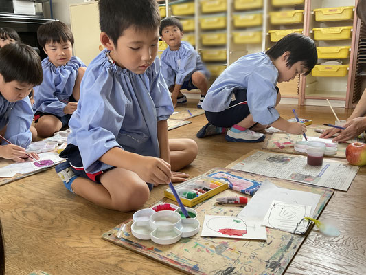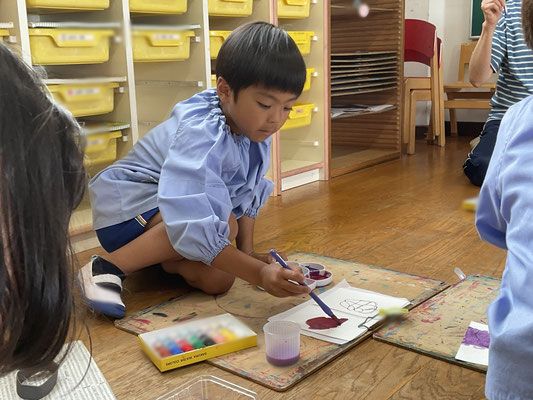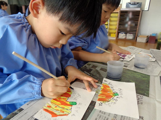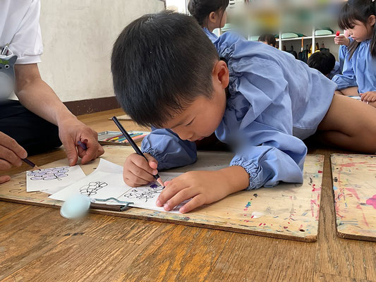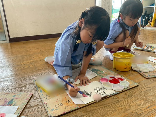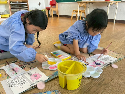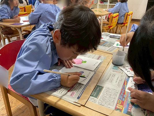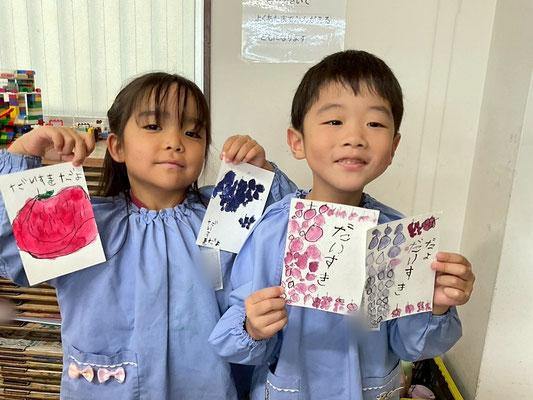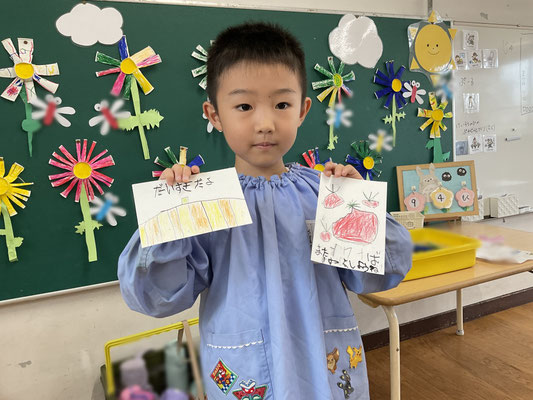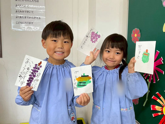年長組 · 2025/09/05 (年長組)だいすきなおじいちゃんおばあちゃんへ❁ ★ドキュメンテーションもあります! 9月15日は、敬老の日です。 だいすきなおじいちゃんおばあちゃんに贈るプレゼントとして、絵はがきを描きました! 墨で形を描き…絵の具で色を塗って…メッセージを書いたら完成✨ 実際の物を見ながら描くことや、文字を描くことが難しい様子も見られましたが、「喜んでくれるかな~」「長生きしてほしいな!」という声が聞こえ、気持ちがこもった素敵なプレゼントができました♪ ☆今週のドキュメンテーションです☆ tagPlaceholderカテゴリ: