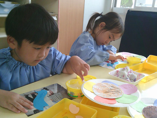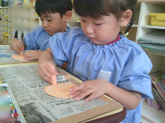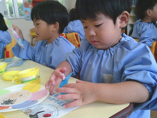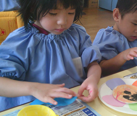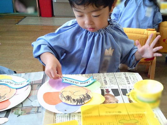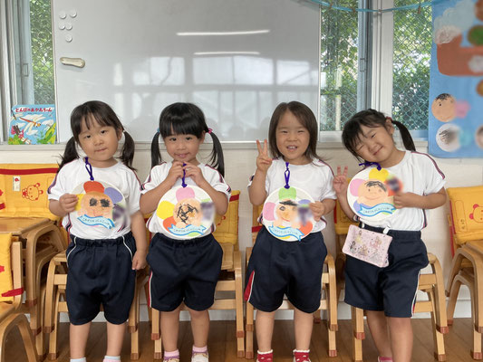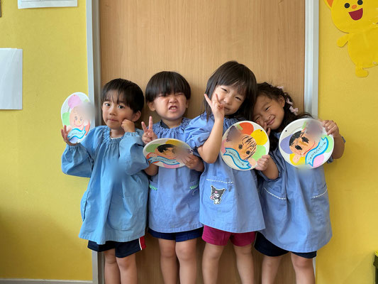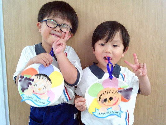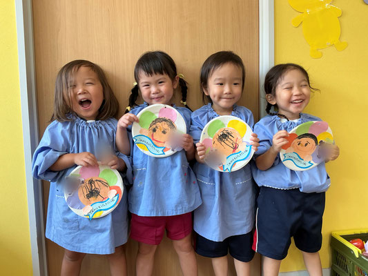 年少組 · 2025/09/12 (年少組)これからも元気でいてね☆ おじいちゃん、おばあちゃんはどんなお顔だったかな?と思い出しながら、クレヨンでお顔を描きました♪ にっこり笑顔のステキなお顔が描けましたよ☻ お顔の周りには花びらをつけて、「これからもげんきでいてね」のメッセージものりで貼りました。指スタンプで作ったおいしそうなぶどうにはみんなのお名前が書いてあります♪ どこに貼ったらお花になるかな?ぶどうはどこに貼ろうかな?と考えながら貼ることができました☻ 完成★ ステキなプレゼントができました♪ おじいちゃん、おばあちゃんに渡すのが楽しみだね! tagPlaceholderカテゴリ: