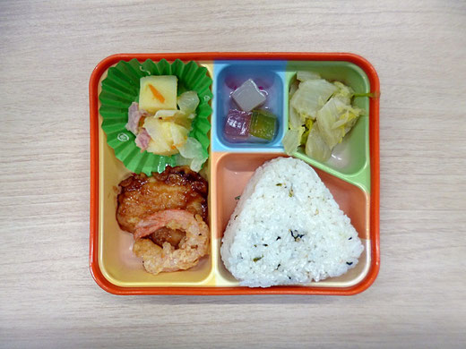 ちどり日記 · 2025/09/12 【9月12日】今日の給食です 今日のメニューは、 ・チキン南蛮 ・海老の天ぷら ・ジャーマンポテト ・白菜のお浸し ・カクテルゼリー ・鮭菜飯むすび です。 tagPlaceholderカテゴリ: