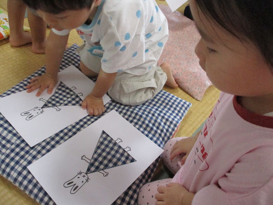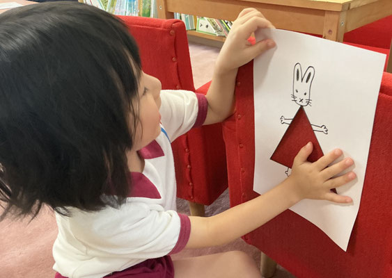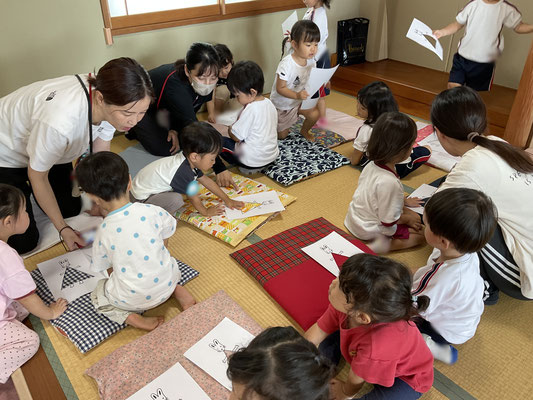 絵本が大好きな年少組さん。実際に絵本の世界に入りワンピース探しができ、とてもいい経験になりました♡