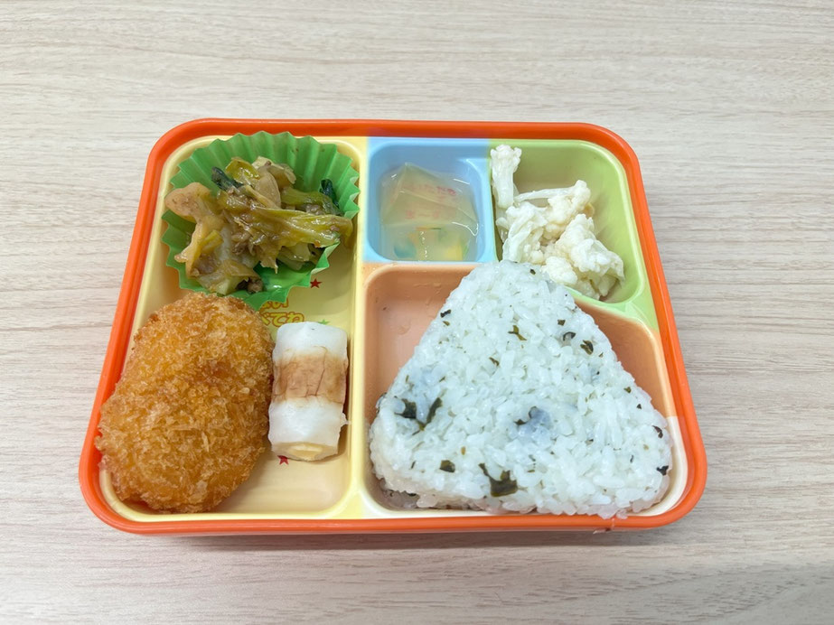 ちどり日記 · 2025/09/18 【9月18日】今日の給食です 今日のメニューは、 ・野菜コロッケ ・チーズ入竹輪 ・回鍋肉 ・カリフラワーとコーンのサラダ ・はちみつレモンゼリー ・わかめむすび です。 本日、のりごまむすびの予定でしたが、わかめむすびに変更になりました。 tagPlaceholderカテゴリ:
