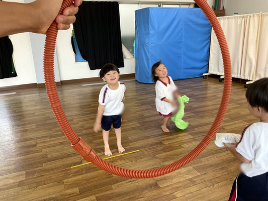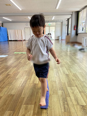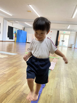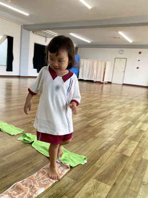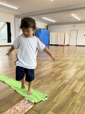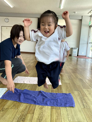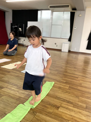 両足を揃えて跳んだり、細いタオルの道をしっかり見ながら取り組む事ができました✨