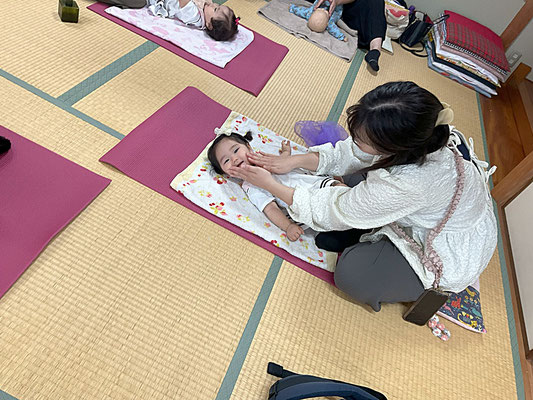 この日は、講師の先生に来ていただき、今年度最後のベビーマッサージでした。