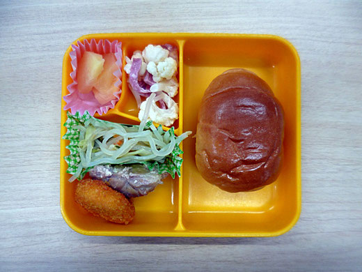 ちどり日記 · 2025/10/15 【10月15日】今日の給食です 今日のメニューは、 ・照焼チキン ・北海扇フライ ・マロニーの炒り煮 ・カリフラワーとハムのサラダ ・パインのシロップ漬 ・レーズンロール です。 tagPlaceholderカテゴリ:
