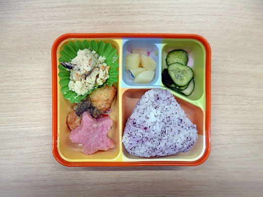 ちどり日記 · 2025/10/16 【10月16日】今日の給食です 今日のメニューは、 ・海苔巻きチキン ・星型かまぼこ ・おからの炒り煮 ・きゅうりとワカメの青じそサラダ ・白桃のシロップ漬 ・ゆかりむすび です。 tagPlaceholderカテゴリ: