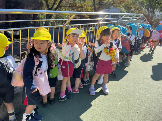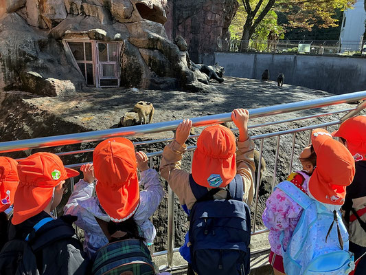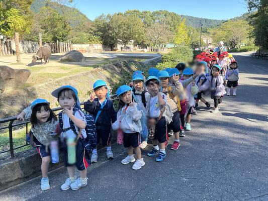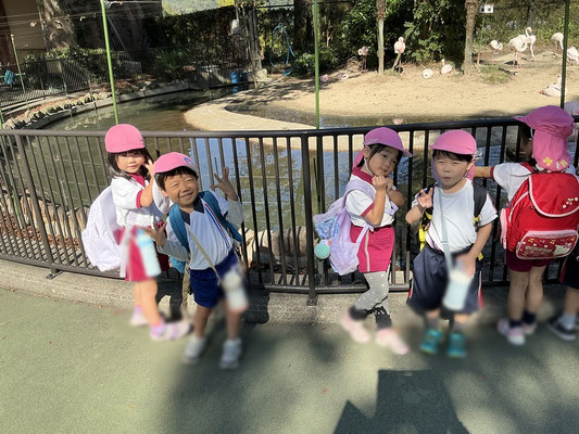 お友だちと手を繋いで歩いて、子ども達も「ぞうさん、とってもおおきい!!」「チーター、かっこいいな★」といろいろな動物を見ることができ、とても嬉しそうでした♪