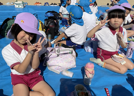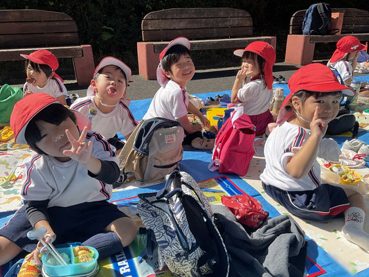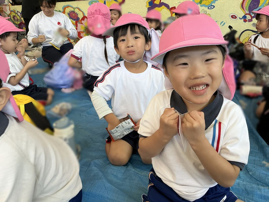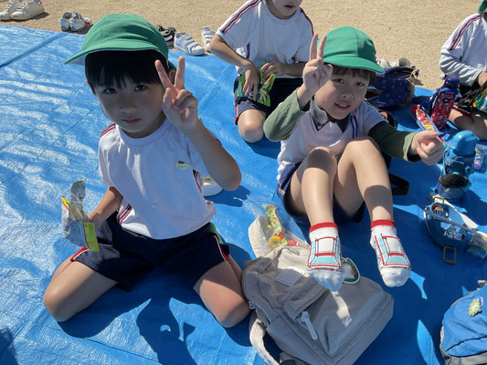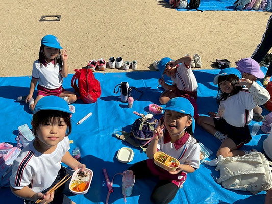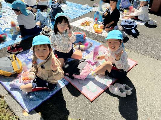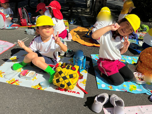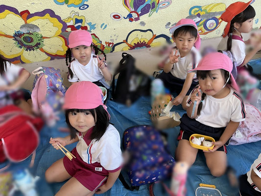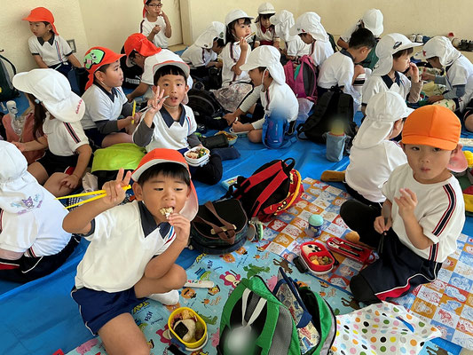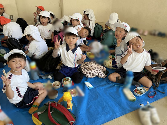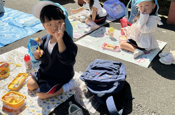 「お弁当おいしい~!」「おかし一緒だ!!」とお友だちとお話しながら、楽しく食べました(^○^)