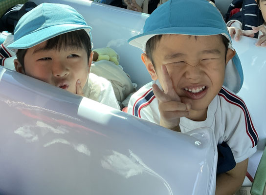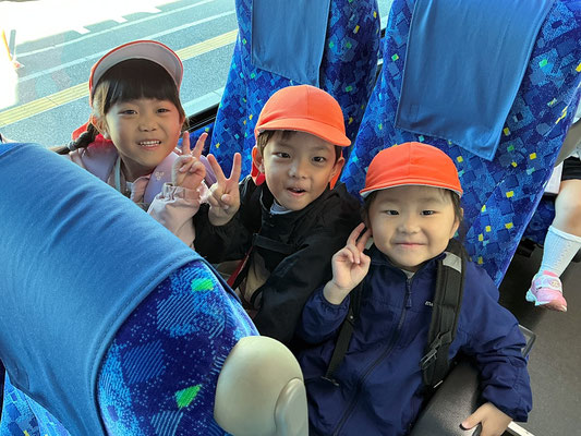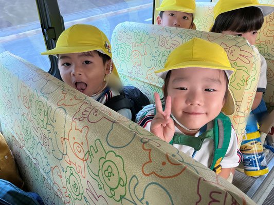 初めてバスに乗って動物園に行きました!バスの中でも、楽しそうな表情がたくさん♪