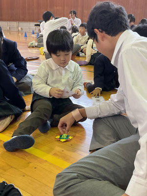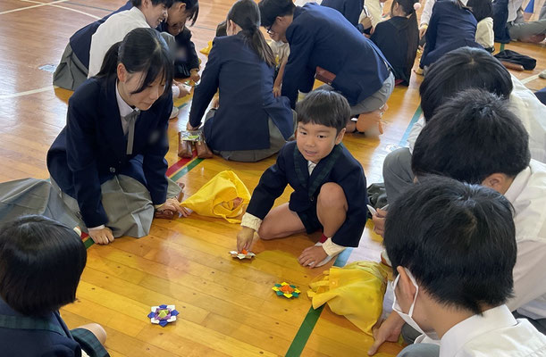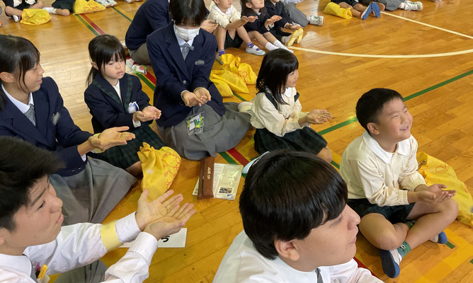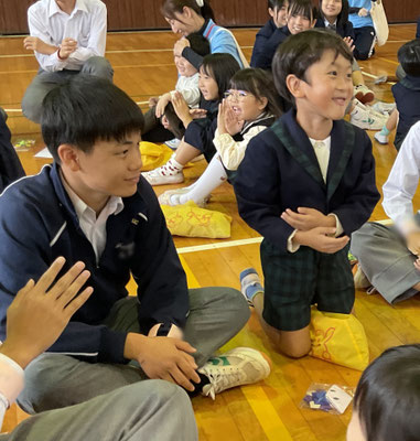 年長組 · 2025/10/27 (年長組)古田中学校交流会がありました! 今日は、古田中学校に行き、中学生のお兄さんお姉さんとの交流会がありました。 最初は緊張していた子どもたちでしたが、自己紹介をしたり、手作りの絵本を見たり…、少しずつ緊張もほぐれ、笑顔でお話しする様子も見られました(^○^) リコーダーの演奏やプレゼントなど、とっても嬉しそうでしたよ♪ お家でもお話を聞いてみてくださいね☆彡 tagPlaceholderカテゴリ: