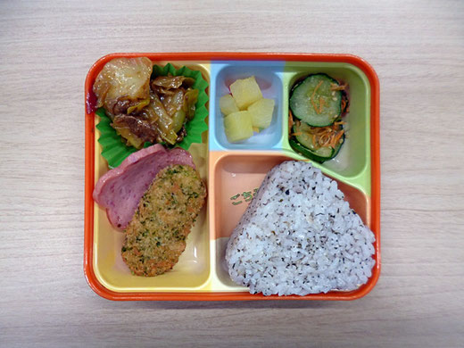 ちどり日記 · 2025/10/27 【10月27日】今日の給食です 今日のメニューは、 ・ささみ磯辺揚げ ・花ソーセージ ・回鍋肉 ・胡瓜の胡麻和え ・りんごのシロップ漬 ・ゆかりむすび です。 tagPlaceholderカテゴリ: