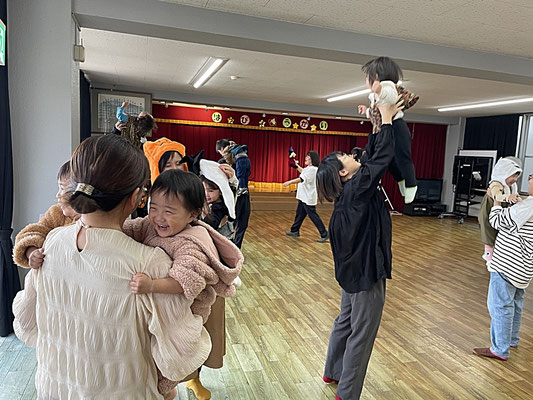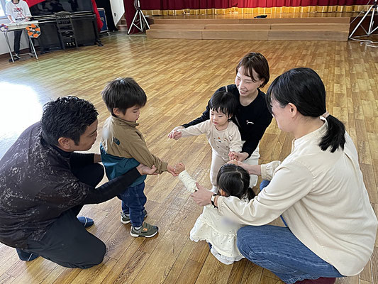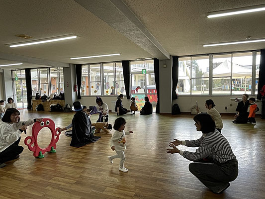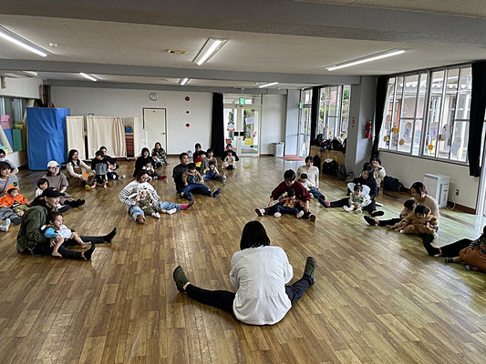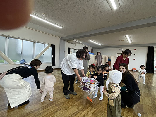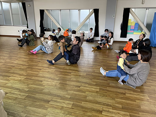 おうちの方のおひざに乗って上に行ったり下に行ったり…。スリルのあるリトミックでした(笑)