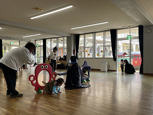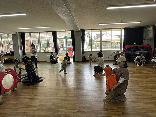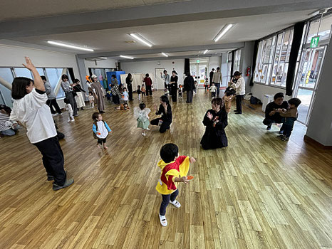 コウモリさんや、ちょうちょ(もしかしたら、ティンカーベル?)さんの羽を付けてきてくれたお友だち、カボチャの帽子やお洋服、ステッキを持ってきてくれたり、ダッフィー、シェリーメイの着ぐるみの子もいたり、かわいいが大渋滞の親子クラブさんでした♡